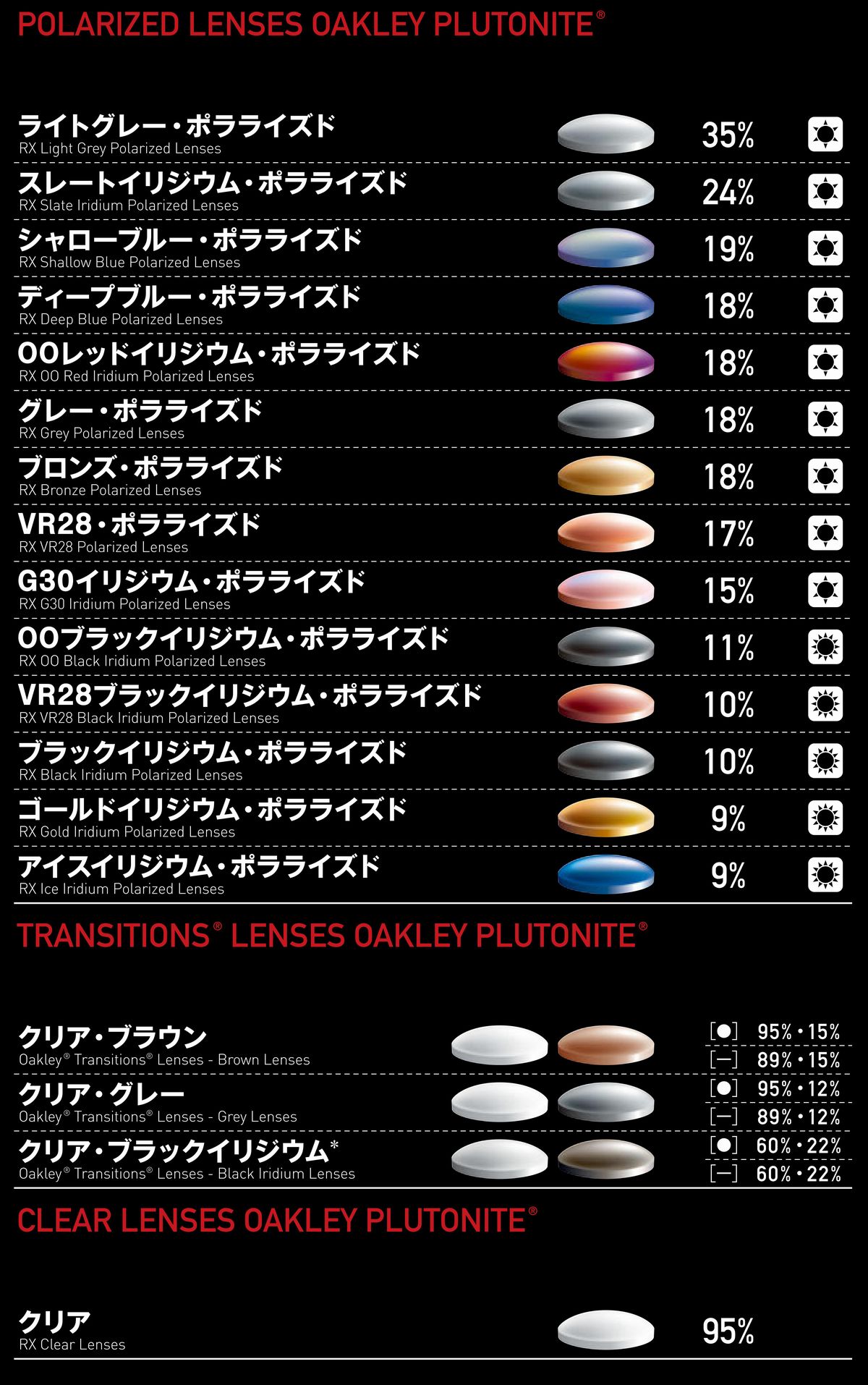 クリアレンズ、カラーレンズ、ミラー付きカラーレンズはもちろん、乱反射をカットしアクティブシーンのパフォーマンスを大幅に向上させる偏光レンズ、紫外線でレンズ濃淡が変化するとても便利な調光レンズもご用意しております。