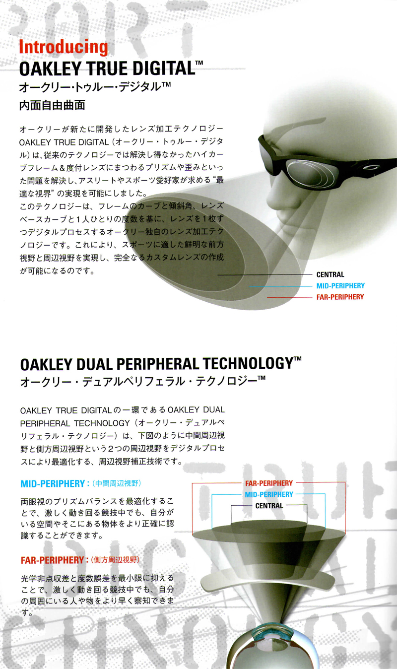 世界のアスリートに多く愛される「スポーツサングラスの一流ブランド」オークリー社では、これらの加工と見え方の点をクリアにした新機軸の度付きレンズを開発しました。