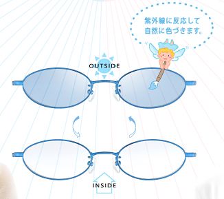 「調光レンズ」と呼ばれる、紫外線を受けた場合に濃度が変化する